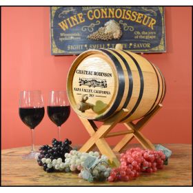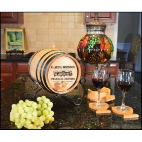 Thousand Oaks Barrels are handmade from new American White Oak. The oak is aged 18 to 24 months outdoors and finished in a kiln for 3 to 5 days. Barrels have a medium char on both the staves and heads. Slight variations in volume will occur due to the thickness and density of our new wood staves. Color and movement in the wood will also vary barrel to barrel.